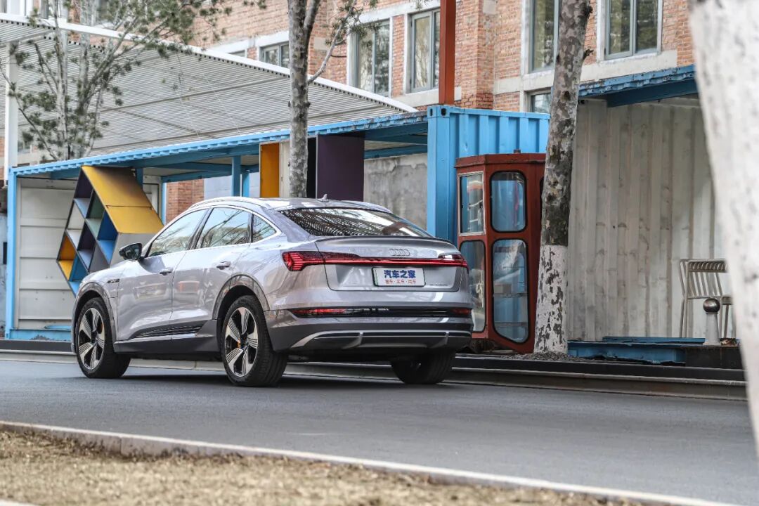 奥迪这一次很大胆,它们将Sportback概念融入其中,好在车身比例十分协调。不过你仔细揣摩之后能够发现,整车从车头到B柱窗沿以下的部分,与普通版本车型没什么区别,有力量够饱满。21英寸的低风阻轮圈有着很明显的新能源风格,轮胎选用的是马牌Premium Contact 6系列,规格为265/45 R21。车身尺寸方面,新车的长宽高分别为4902/1935/1618mm,轴距达到了2928mm,定位中大型SUV。