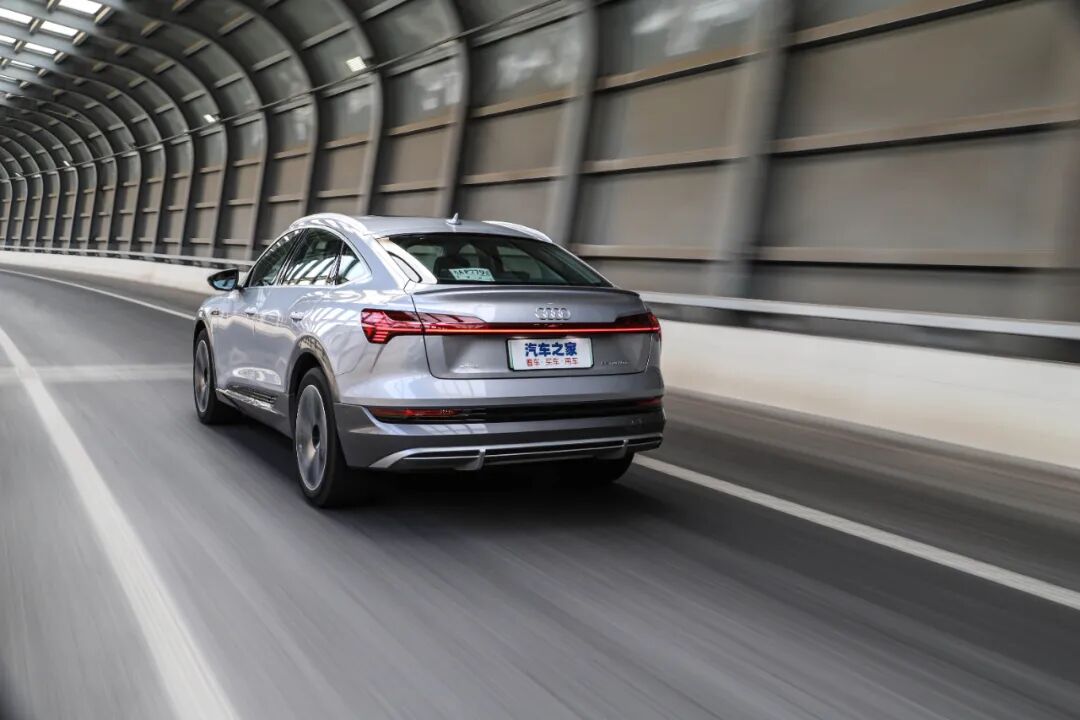 这台e-tron Sportback在底盘方面表现出了足够优秀的调校功底,对于路面上大小颠簸都能够从容化解,从而减小冲击感。面对连续的重心转移,侧倾也并不大,能够给予驾驶员足够的信心。深究其原因,我认为能有这样的表现和五连杆后悬架、动态转向系统、来源于电池包的低重心优势以及50:50的前后载荷分布不无关系。