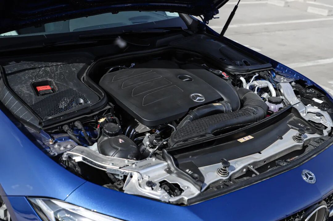 本次试驾车型为CLS 350 4MATIC,动力系统采用2.0T发动机+48V轻混系统的组合,系统最大功率299马力,最大扭矩400牛·米,传动系统匹配的是9速手自一体变速箱以及多片离合器结构的四驱系统,官方给出的0-100km/h加速时间为6.2秒。