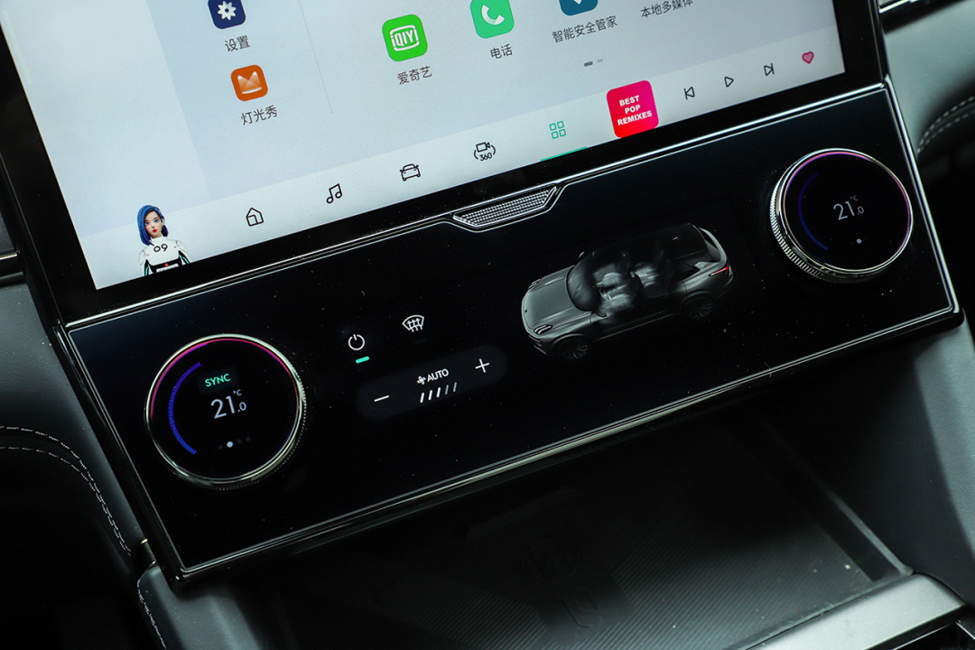 精致小巧的旋钮带有独立的显示屏,滑动屏幕可切换空调、座椅加热/通风以及方向盘加热功能的设置界面,然后通过旋钮来控制空调温度、座椅加热/通风以及方向盘加热的强度,在熟练掌握后,方可适应。当然,若嫌麻烦的话,也可以选择直接唤醒车辆的语音识别系统。