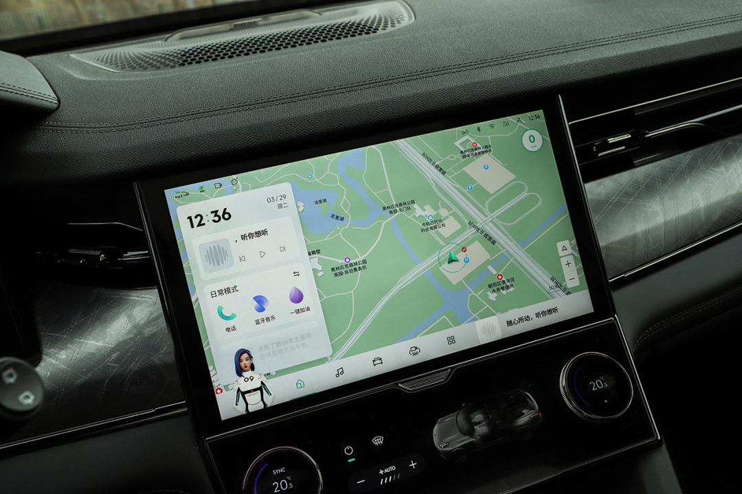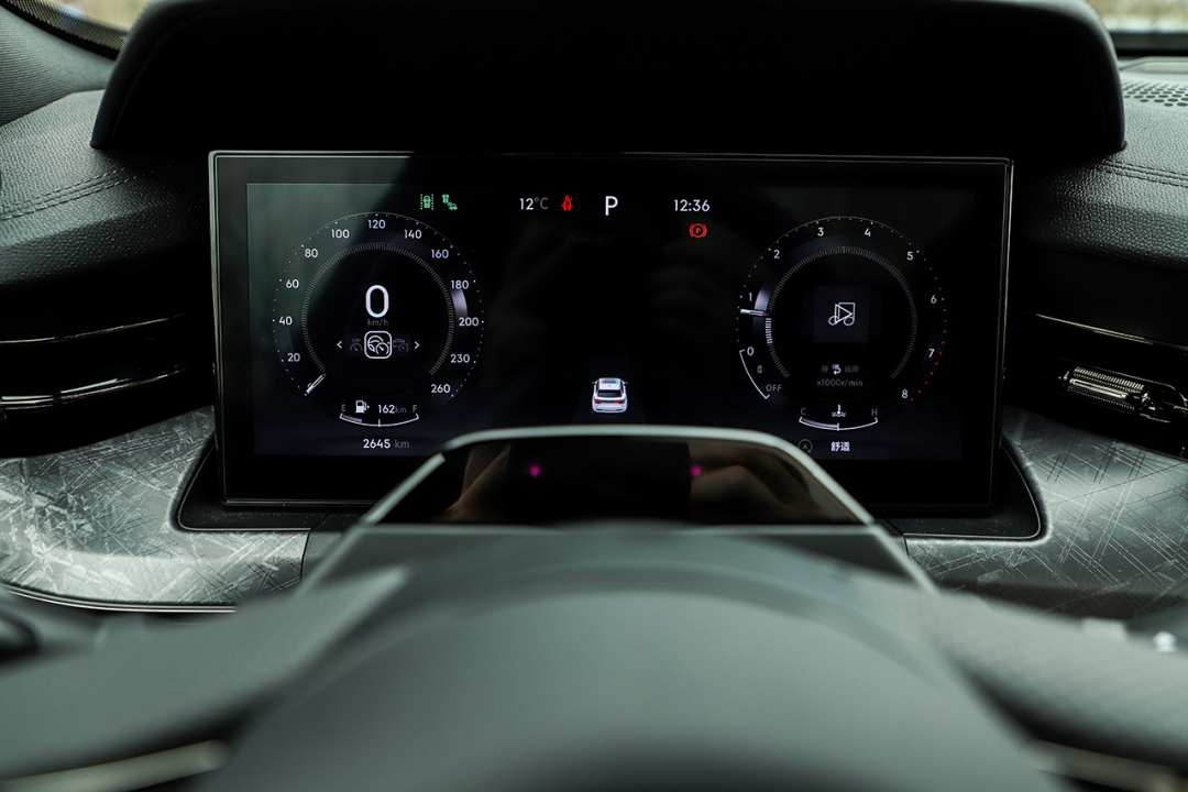 全液晶仪表盘界面风格简约清新,可以根据不同驾驶模式切换不同的主题,且支持投射导航信息。12英寸中控屏搭载高通骁龙8155芯片,在运行速度上达到一流水准,功能方面,支持导航、语音识别、车联网、OTA升级等,日常使用频率较高的功能都有。