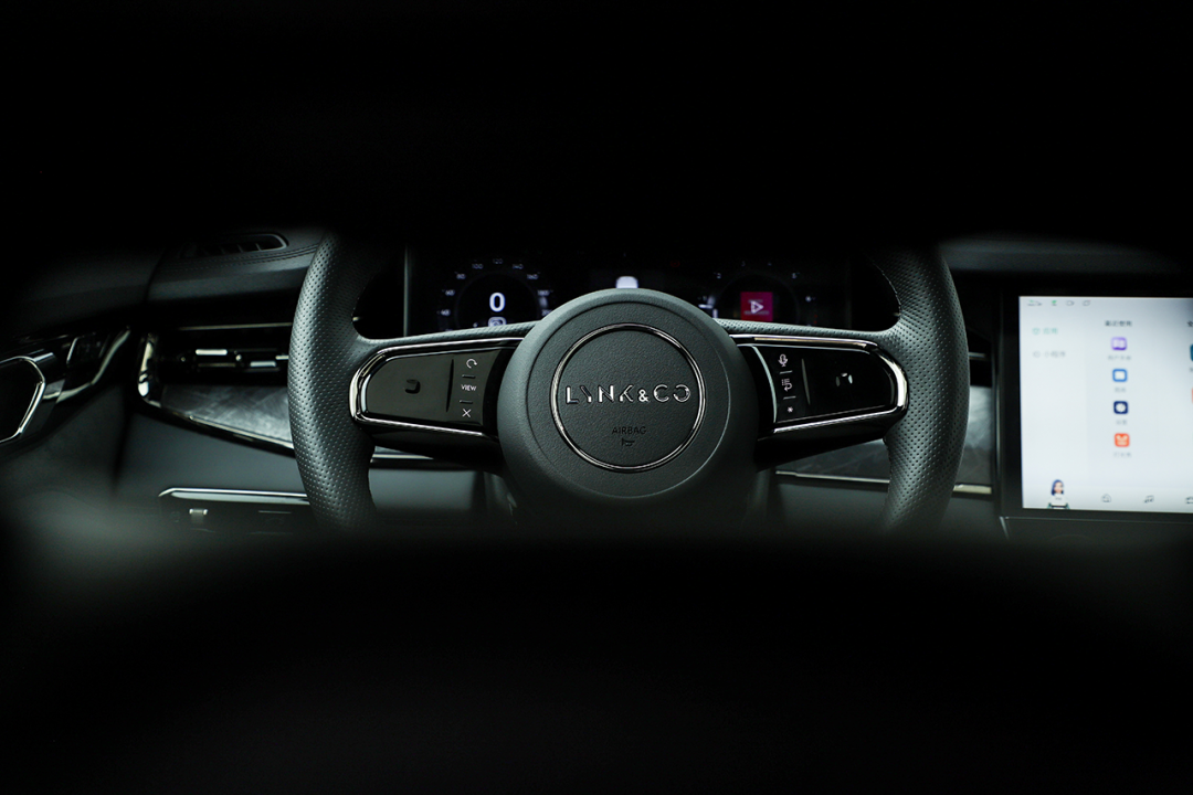 当你坐进车内,启动车辆后,便能立刻发现领克09与其余领克车型显著不同的一点。让人难以置信的是,即便是在冷启动的工况下,发动机声音也做到了出奇地安静,车厢内几乎听不到怠速运转时的声音,很有豪华车的感觉。