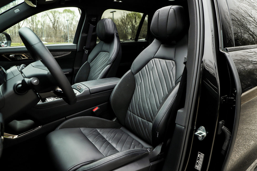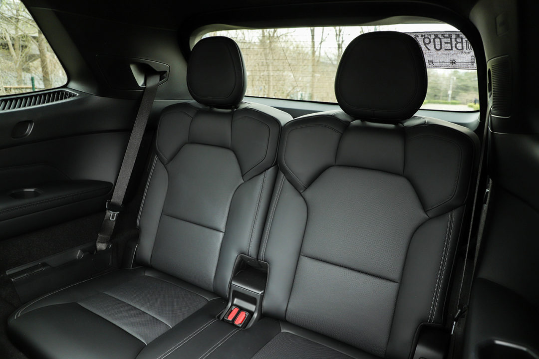 第二排为两张独立的座椅,支持4向电动调节,乘坐舒适性与前排座椅几乎一致。乘坐空间可以胜任日常使用,但表现不算突出,即便第二排座椅处于最靠后的位置,也很难给到乘客“头等舱”般的空间待遇。