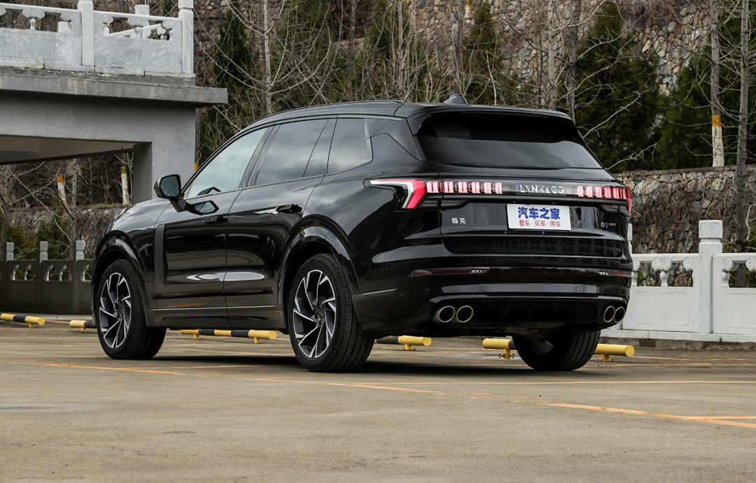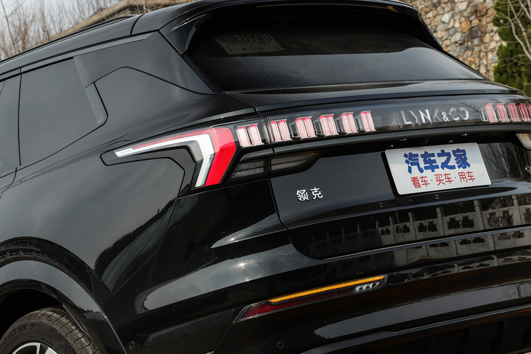 相比于前脸设计,领克09的尾部造型更容易让大众人群接受,可以算得上是老少皆宜。双边共四处的排气布局不算夸张,对于一辆中大型SUV来说,营造出沉稳、大气的车尾风格没有任何的不妥。能量晶体尾灯十分漂亮,但后转向灯没有采用与尾灯灯组一体的设计,而是被单独地布置在后包围上,后方跟车近了容易看不见,这一点我个人持保留意见。