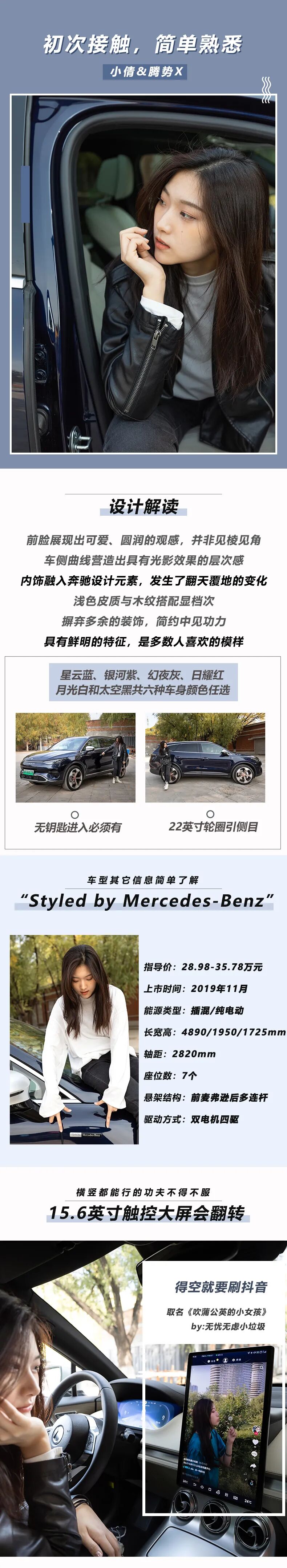 之前很长一段时间里,我对奔驰的家族设计的认同感并不高,觉得那仅仅是“上相”而已,实际体验比较一般。这次,我的态度发生了改变,腾势X仅仅是通过对奔驰造车DNA的小运用,就让自己发生了翻天覆地的变化,奔驰的设计功力成功让我转粉。