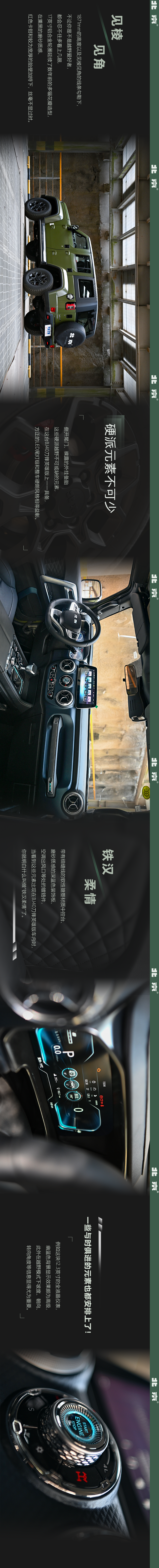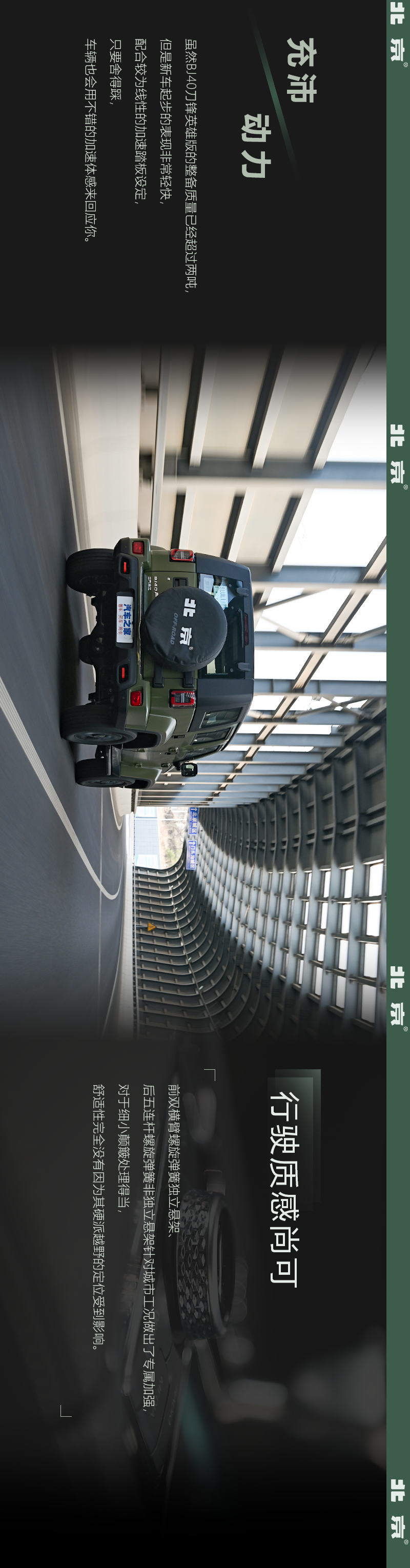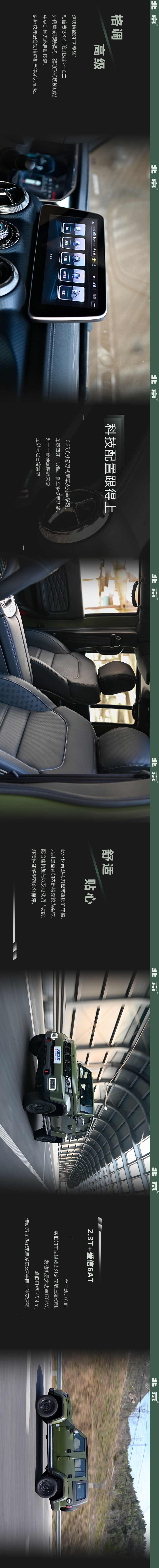 用“时尚单品”来形容北京越野-北京BJ40刀锋英雄版恐怕再合适不过了,方正硬朗的造型配合目前主流的磨砂质感绿色涂装,走到哪里都能引来旁人目光,让你的虚荣心得到极大满足。此外BJ40刀锋英雄版的内饰设计也一改硬派越野给人的“硬塑料、做工差”等印象,双液晶大屏配合大量软性材质的中控台,不论是科技氛围还是触觉的高级感都比较到位。在动态表现上,2.3T动力配合爱信6速手自一体变速箱不论是动力储备还是变速箱的平顺性都令人挑不出毛病,如果你也厌倦了那些追求流线型、潮流设计的车型,那么BJ40刀锋英雄版或许是个不错的选择。