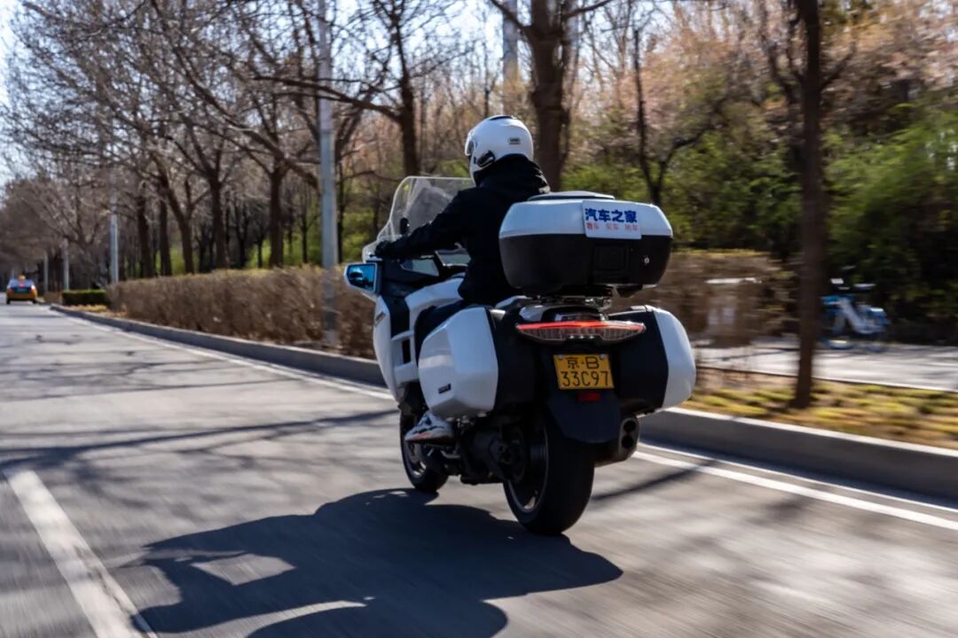 虽然看起来“笨重”,但1250TR-G的运动表现其实非常出色,无论是稍显紧绷的减振器反馈还是M50卡钳充裕的制动力,这台“大国宾”在急刹与弯中的表现都非常从容。如果从设计角度考量,这也非常符合铁骑与国宾队的需求。