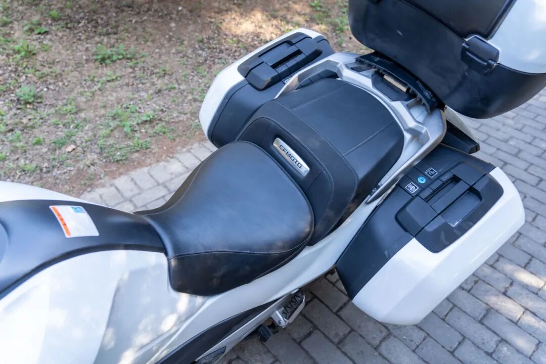 皮革包裹的分体式座垫采用了白色缝线,前段足够收窄、后端足够宽大,从舒适性来说1250TR-G完全符合旗舰级的定位。