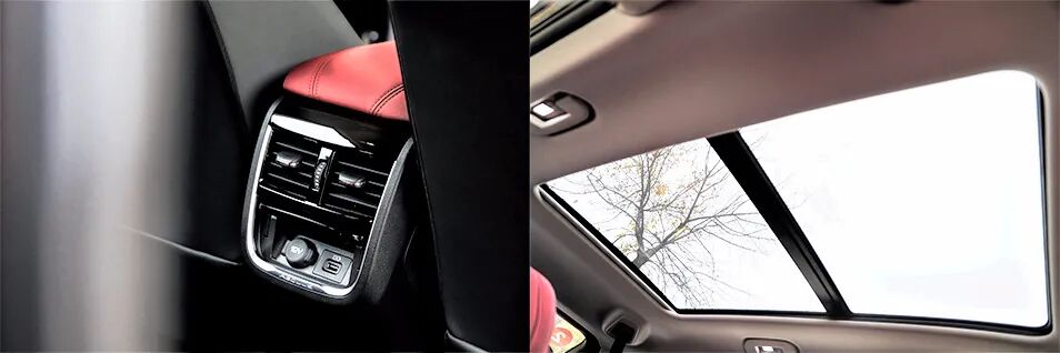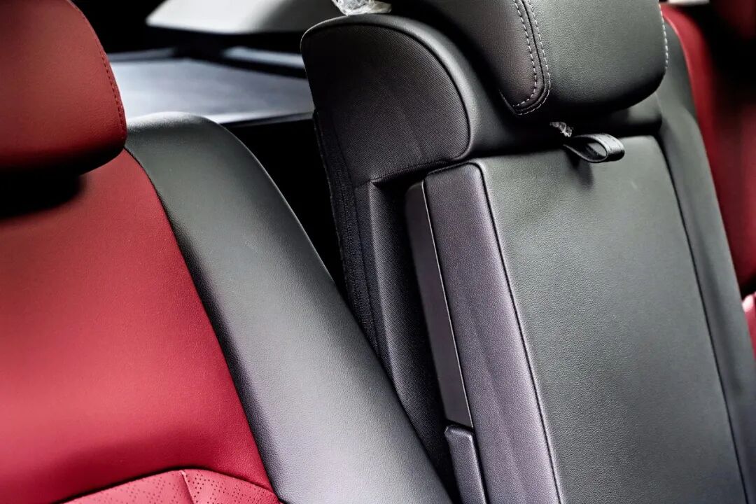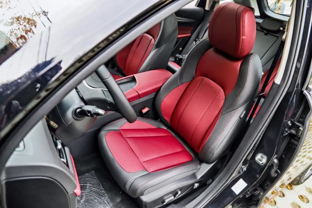 实拍车型配备黑红双色拼接的皮质座椅,柔软度不错,久坐不累。主副驾驶均支持电动调节,前排座椅带加热功能,主驾驶座还支持通风和按摩。