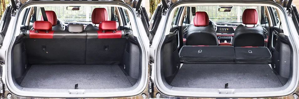 东风风神AX7 PRO 2021款 PRO 1.6T 自动荣耀版配备电动感应后备厢,后排座椅靠背不放倒时,后备厢常规储物空间就很可观,内部规整。后排座椅靠背放倒后,能形成近乎纯平的地台,极大拓展了装载能力。