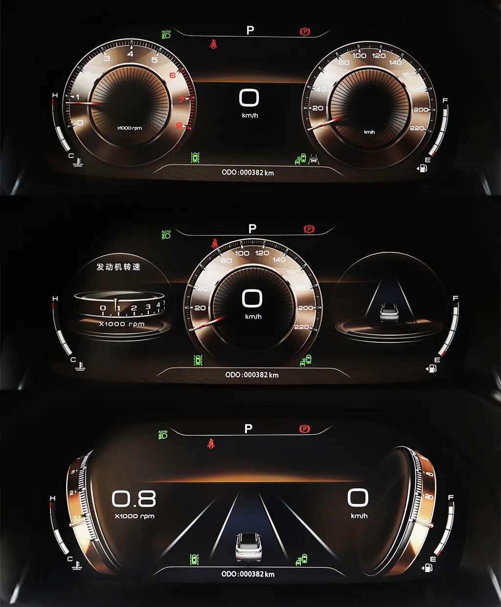 12.3英寸全液晶仪表盘显示效果清晰,拥有三种界面样式,可以根据喜好进行更换。仪表盘可显示续航里程、自适应巡航、车道保持辅助、油耗、胎压等多种信息,可参考性很强。