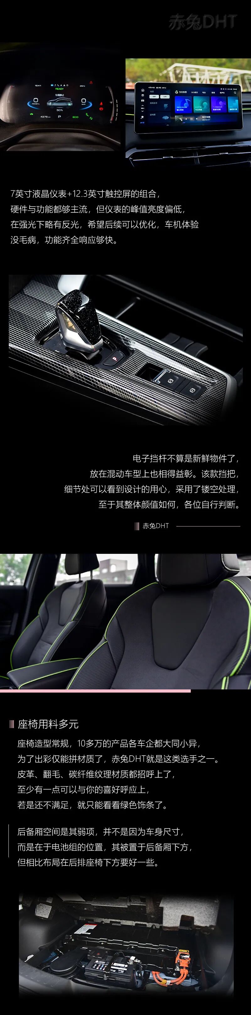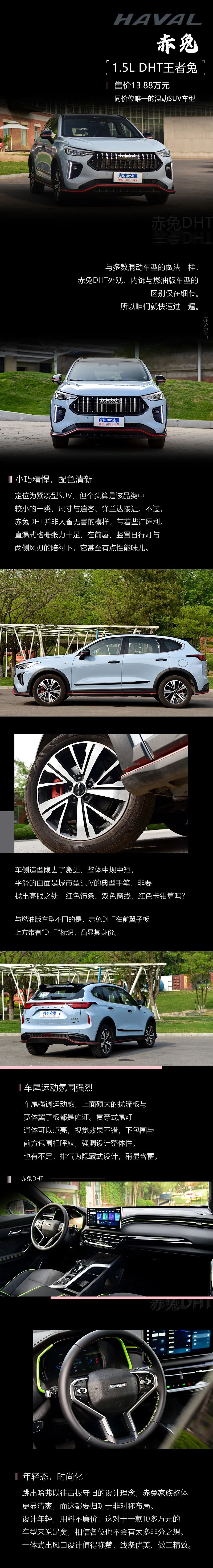 哈弗赤兔DHT无疑就是上述内容的践行者之一,混动系统表现如何正如文中所谈。至于配置表现,哈弗旗下车型可以说是约等于高性价比,全速自适应巡航、主动安全系统、四轮独立悬架都可以给到用户,这也是同价位合资品牌车型难以企及的。此外,赤兔DHT还有一重身份,它是同价唯一可以买到的混动(HEV)车型。