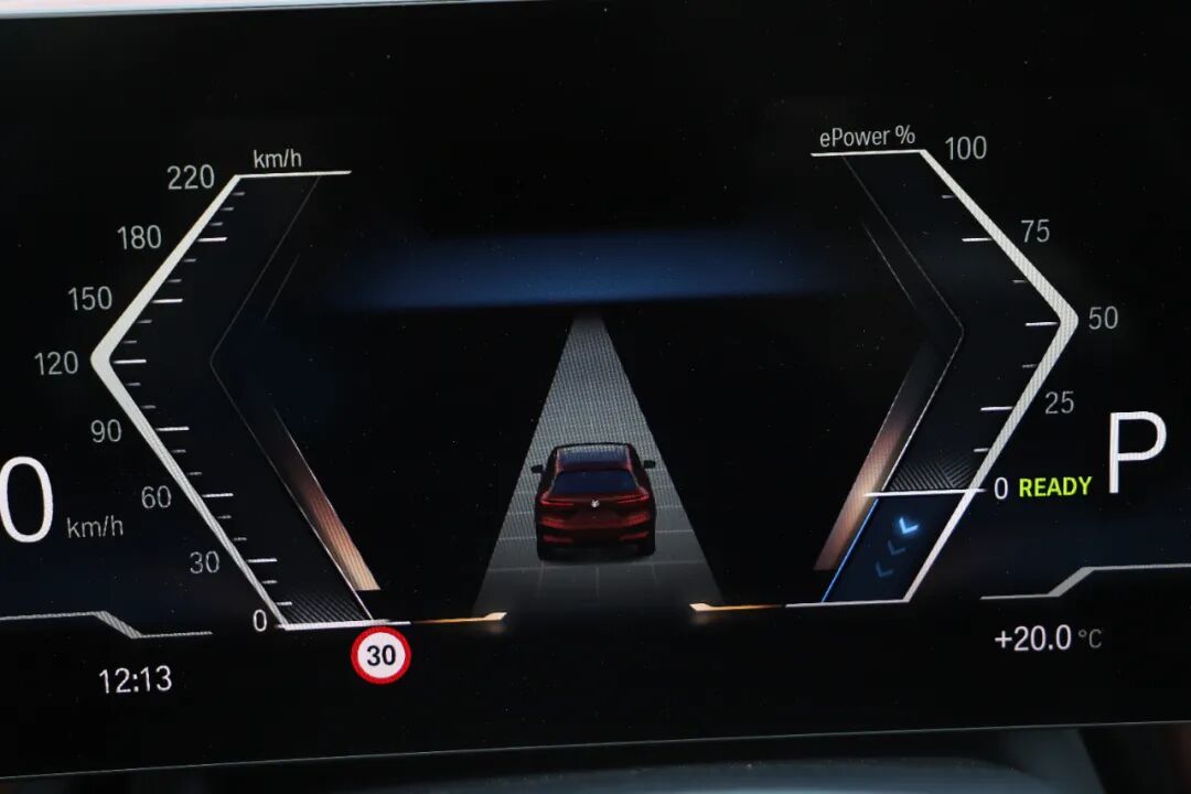 iX拥有高、中、低以及自适应在内的四种动能回收模式,前三种的差别还是比较大的,在高位模式下,电机的动能回收可最多实现0.25g的减速度,机械刹车介入很少,几乎可以实现单踏板驾驶。自适应模式下,车辆可通过对前方路口、车辆的监测,若前方是直路且较为畅通,自适应动能回收力度会减小甚至接近滑行,如果前方车流量大车距近或者要经过弯道等路段,自适应动能回收力度会自动提升,逻辑上与ACC自适应巡航类似。