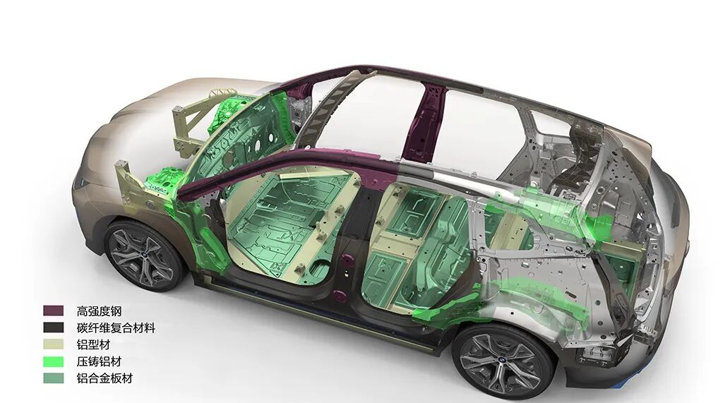打开车门,车门内框的碳纤维车架直入眼帘,宝马将其称之为Carbon Cage碳纤维笼式车架,后备厢框架以及车顶前方的横梁也都是碳纤维材质,部分车体还拥有类似于劳斯莱斯上应用的铝合金型材,用料可以说是十分下本,不负旗舰之名。