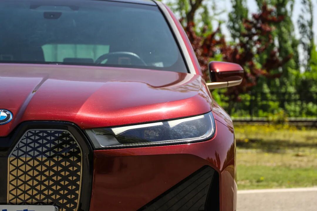 LED矩阵激光大灯组造型尤为狭长,内部两个主光源组成了宝马经典的“四眼”样式,带有自适应远近光功能,铺路效果以及亮度堪称完美。另外,车头机舱盖并不能自己打开,唯一能打开的只有宝马车标下方的玻璃水加注口。