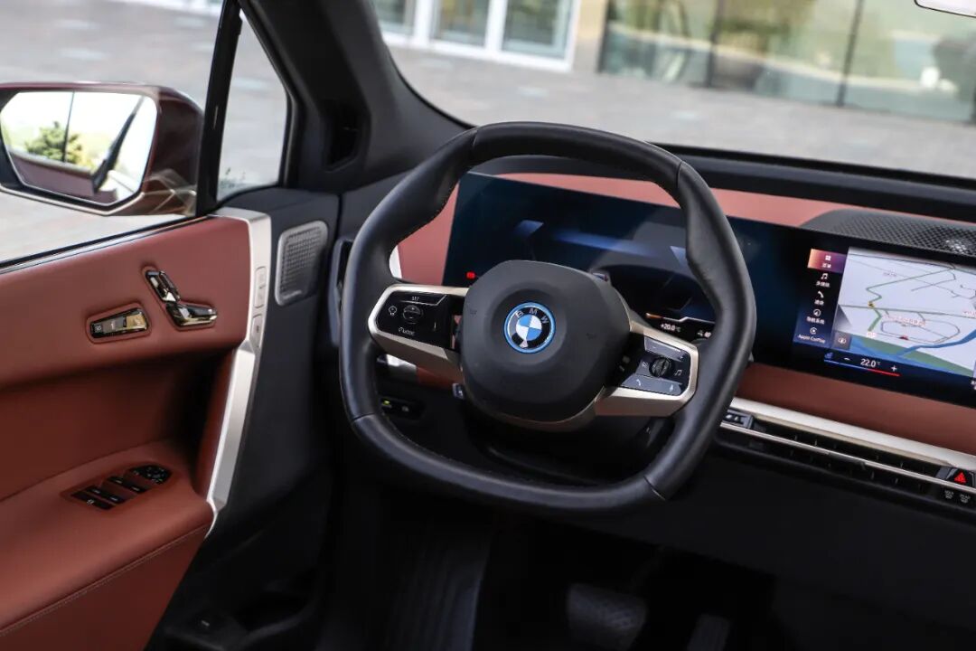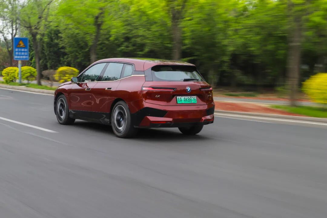 底盘的厚重感在这台iX上依旧是值得称赞的地方,高级氛围浓郁。减振器对于路面上的细碎颠簸都能够很好的过滤掉,相当的润,不会有多余的弹跳。虽然整车以舒适性为第一要务,但偶尔的激烈驾驶悬架确实能体现出良好的支撑性,得益于低重心以及后轮转向的加入,开着iX十分灵活,没有任何笨重的感觉。另外,空气悬架的加入,也让该车的通过性进一步提升。