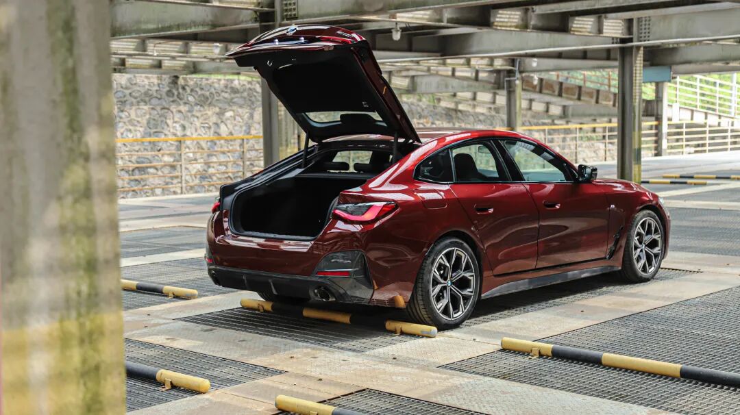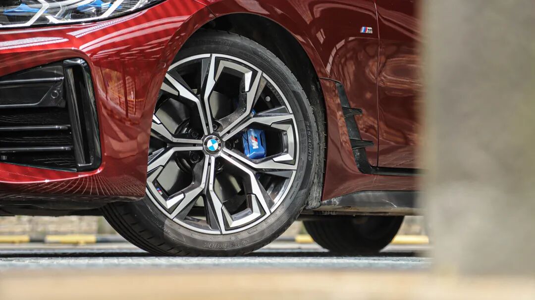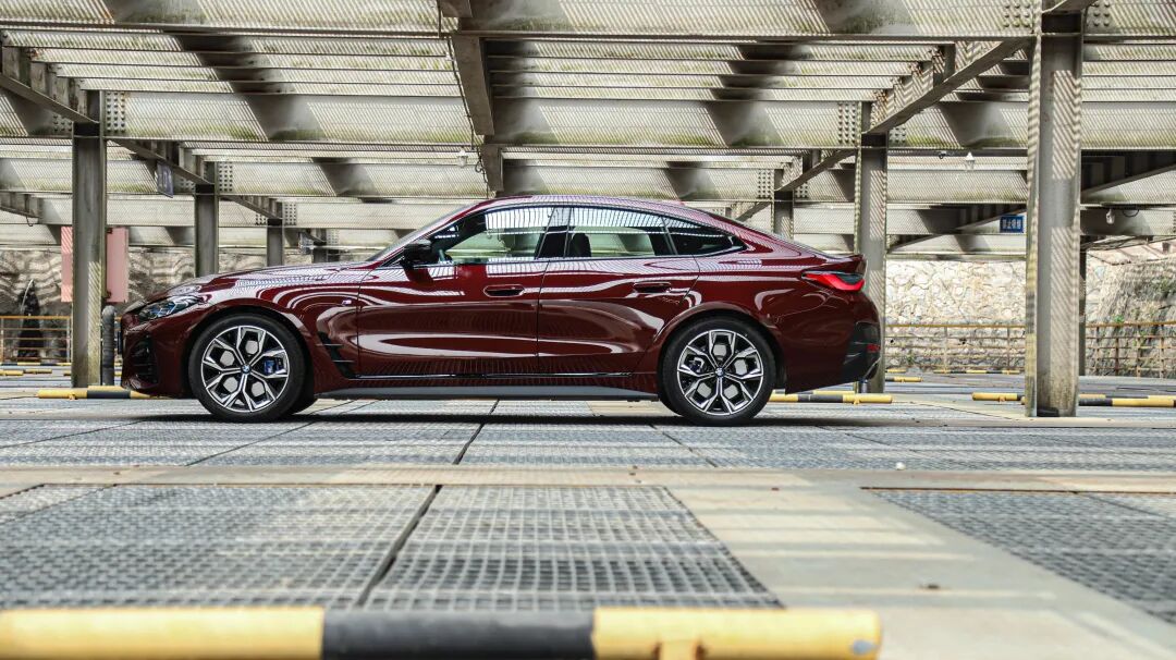 相比于双门4系后翼子板处略显单薄的型面处理,四门版车型在视觉效果上就显得饱满许多,贯穿全车的L型设计于细节之处大胆演绎,溜背式的车顶线条也让车身尽显优雅,车型的长宽高分别为4788/1852/1452mm,轴距2856mm。另外,轮胎采用的是韩泰Ventus S1 evo 3,规格前245/40 R19,后255/40 R19,蓝色卡钳颇为显眼。