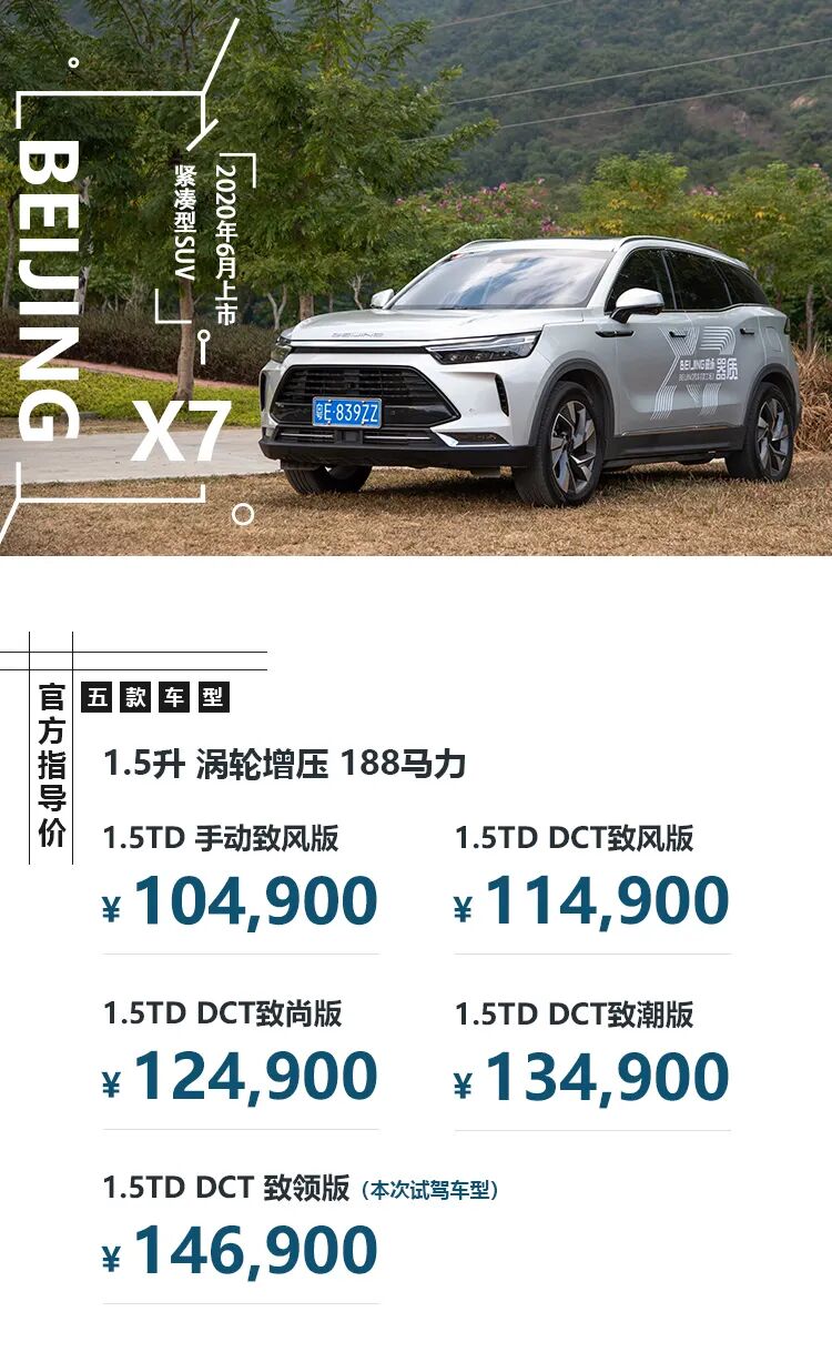 今年6月,BEIJING汽车旗下新车BEIJING-X7正式上市,新车共推出5款车型,售价区间为10.49-14.69万元。BEIJING-X7定位为紧凑型SUV,外观采用了最新的家族式设计,内饰有三块大屏质感突出,动力上提供1.5T发动机+6挡手动/7挡双离合变速箱的组合,以下是关于它的试驾感受和在北汽广州工厂的体验。