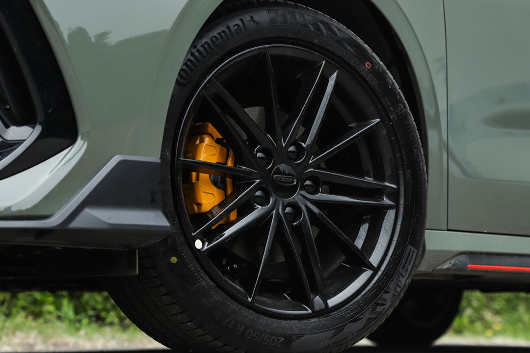 除此以外,缤瑞COOL在细节上的设计同样得到了高度重视。熏黑轮圈搭配黄色卡钳,很有改装车的气质。轮胎方面,配备的是偏运动取向的马牌UC6系列轮胎,规格为205/50 R17,感觉很对,讨人喜欢。