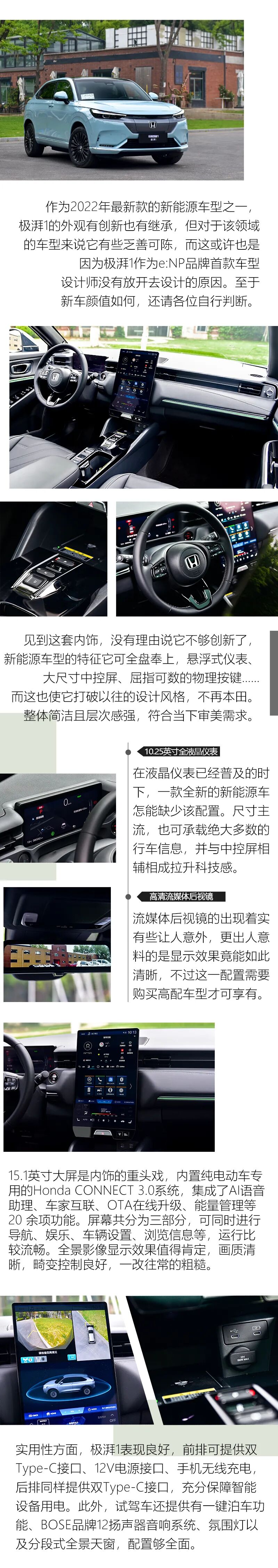 去年10月份,本田中国发布了“电动化战略,一句“嘿世界,这才是EV”,令人印象深刻。在很多时候,很多人的固有认知中,新能源车就像钞票一样,除了续航里程和角上的数字,你很少会在意其他细节,而在与e:NP1 极湃1接触后,平心而论这款车还是有个性的,也将本田的操控得以继承,但在设计与智能化方面还有提升空间,因为它要面对的不单单是合资品牌车型,更多的还是中国品牌车型。售价方面,可参考隔壁东风本田e:NS1的售价区间:17.50-21.80万元。