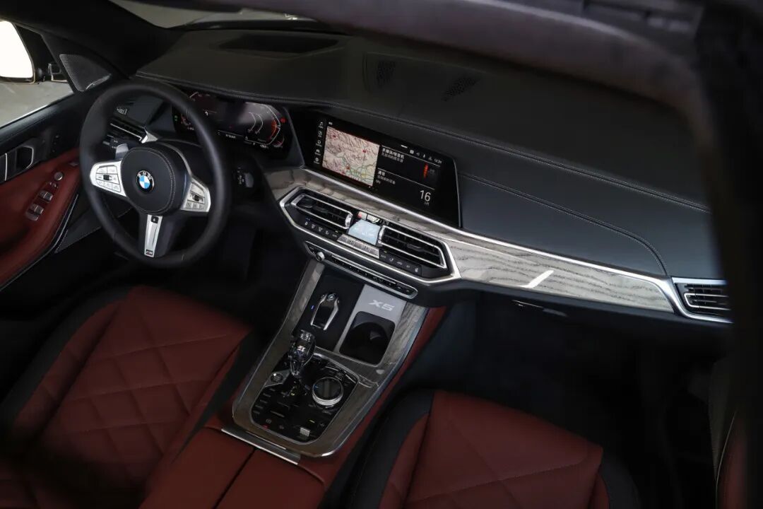 新车内饰同样是我们熟悉的宝马家族式设计,豪华感、档次感出众。相比于进口车型,国产长轴宝马X5调整了中控T型区的设计,挡杆前方设置了手机无线充电面板,右侧银色饰板还加入了X5字样以表明身份。
