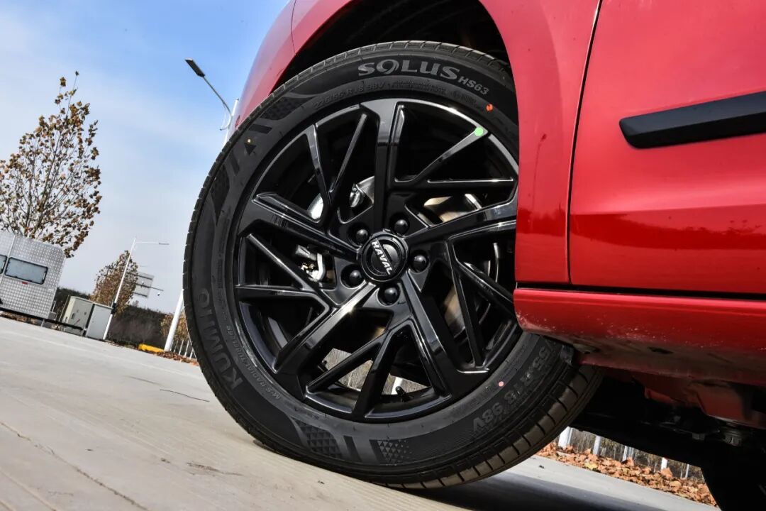 18英寸轮圈运用了多条辐的造型,看上去并不杂乱,黑化的样式也与整车年轻运动的气质相符。轮胎选用了锦湖舒乐驰系列,规格为225/55 R18。
