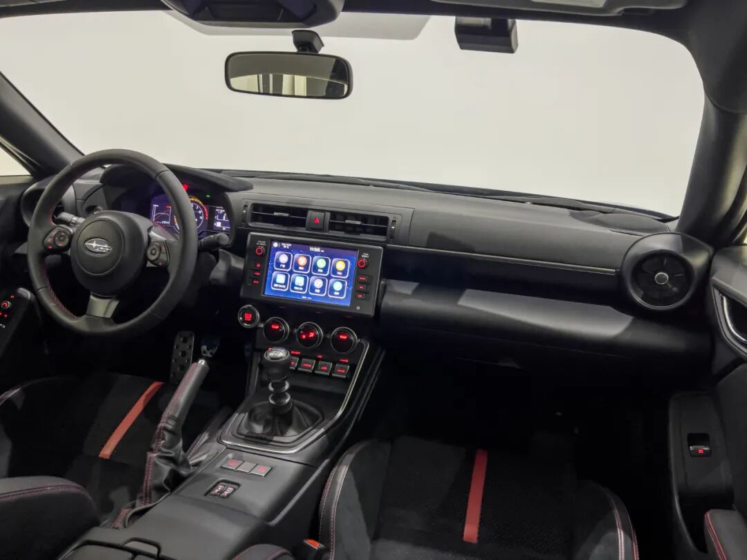 整台车的精致感有了一定的提升,车内覆盖了不少翻毛皮材质,并且最大限度保留了JDM的味道。7英寸双屏仪表功能丰富,圈速记录、G值、动力曲线图均有提供。由于平台升级,如今的BRZ在日常驾驶时的质感更加出色,悬架反馈不会显得过于生硬……