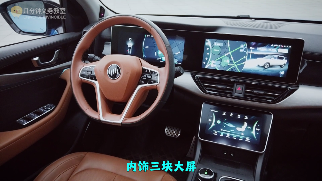 内饰三块大屏,座椅很软,中控台很软,到处都是软包,对得起胖乎乎这个词。