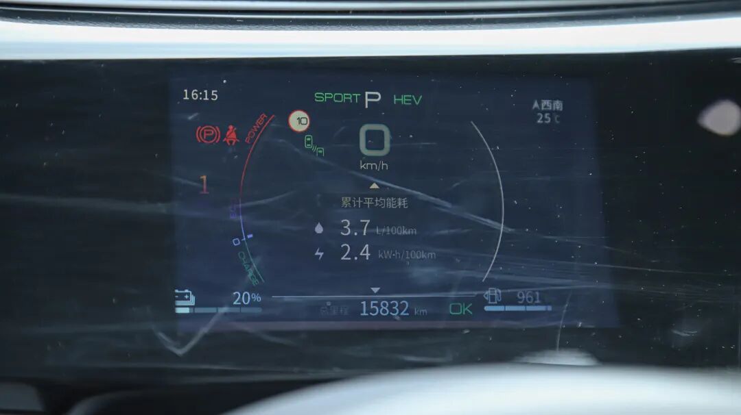 底盘调校保持了比亚迪的高水准,舒适性为取向的风格明显,同时具备不错的动态特征,过弯时的车身循迹性不错,节奏灵活,整体感强。续航方面,我们将秦PLUS DM-i调整至节能模式,空调温度23℃,电池电量20%以下,行驶103.5公里之后,秦PLUS DM-i加入4.41升燃油,计算可得油耗为4.26L/100km,馈电状态下的油耗表现足够出色。