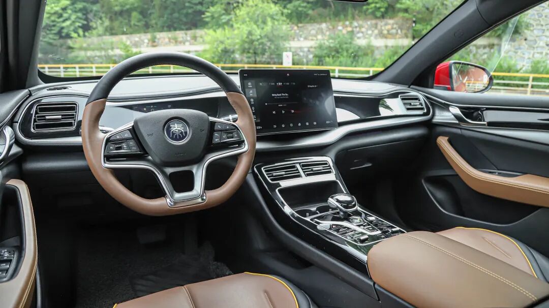 秦PLUS DM-i依旧配备了我们熟悉的那套插电混动系统,骁云-插混专用1.5L发动机的最大功率110马力,最大扭矩135牛·米,热效率可达43.04%;本次试驾的顶配车型搭载的电混系统EHS145,电机最大功率145kW,最大扭矩325牛·米,传动系统匹配的是E-CVT无级变速箱。