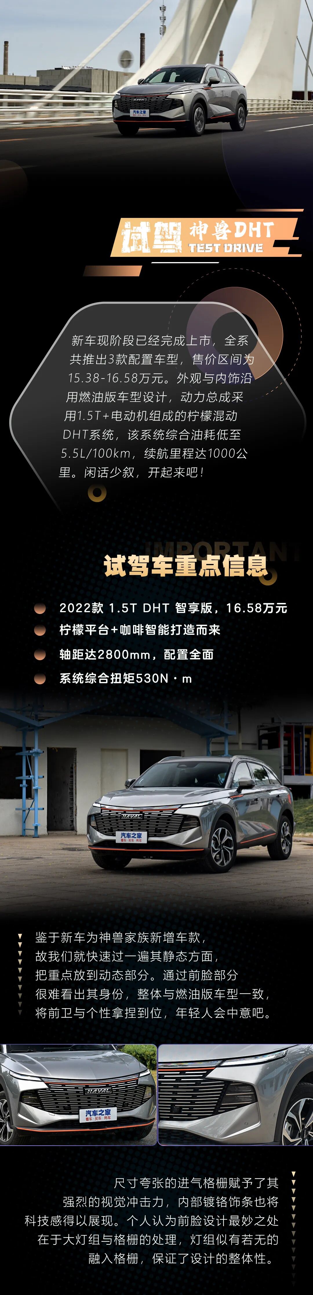 油价一涨再涨,混动车型变得炙手可热,而一说到该品类车型相信各位的第一反应准是“两田”相关车型,它们的产品力的确不错,但以“二老”为首的老牌合资混动车阵营似乎很难让年轻人群提起兴趣,尤其是内饰设计、智能化和配置方面。不过没关系,今天的主角刚刚完成上市的哈弗神兽DHT混动版或许会满足各位的需求。