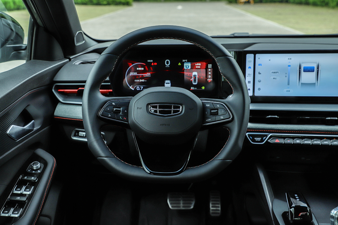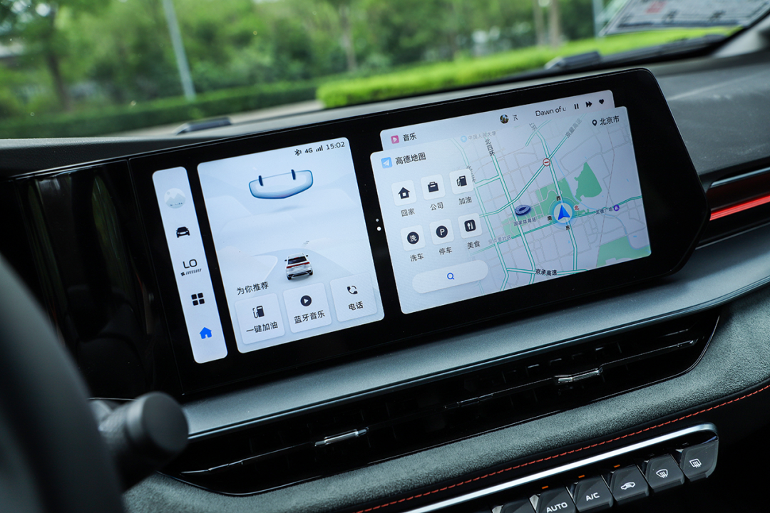 10.25英寸全液晶仪表盘与12.3英寸中控屏构成双联屏布局,中控屏搭载银河OS系统,界面UI简洁清新,几乎没有上手难度。功能方面,支持在线导航、智能AI语音识别(可控制天窗、空调等)、车联网、FOTA升级、三指飞屏(双屏导航互动)等。
