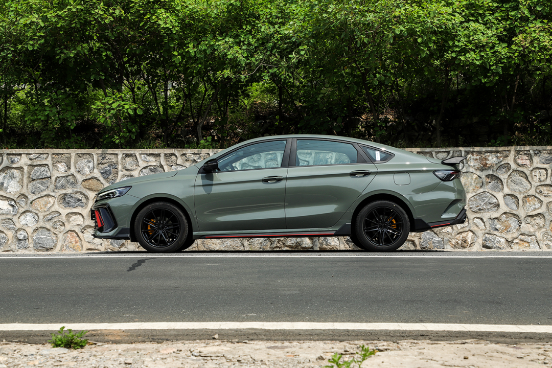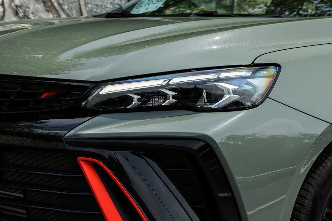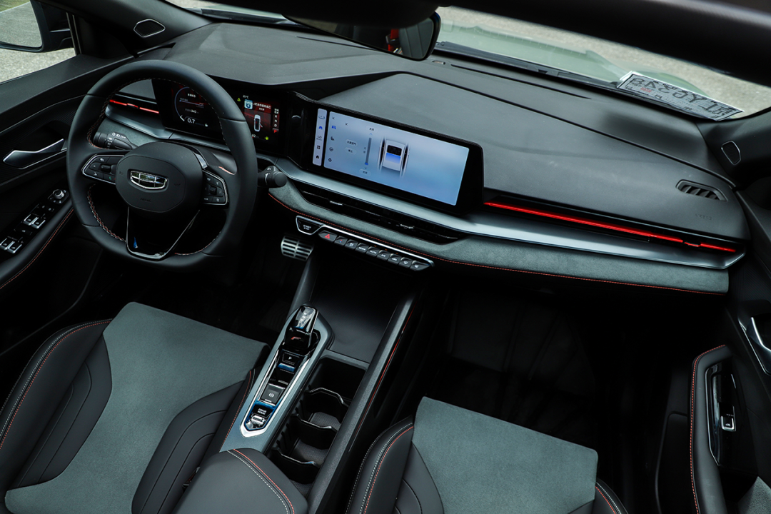 全新的前脸造型基于吉利能量风暴4.0设计语言打造,在整体设计上更加激进。中网与前包围经过黑化处理,大量运动外观套件的加持,让整车的风格看起来更加酷炫。