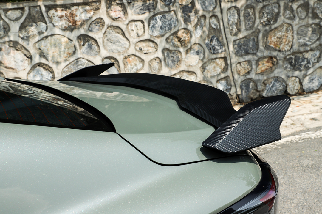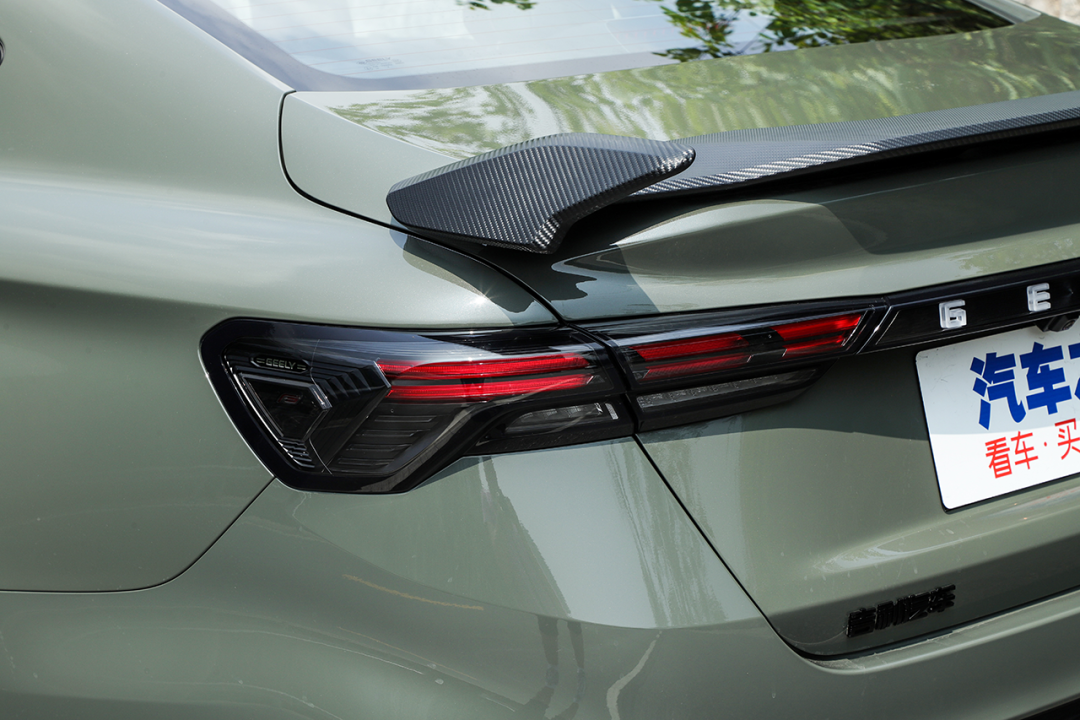 尾部造型让人眼前一亮,视觉冲击感极强,大尺寸后扰流板绝对吸睛,表面还带有类似碳纤维的纹理图案,官方称之为“破锋大尾翼”。双边共双出的排气绝非摆设,椭圆形的排气口更具运动氛围,同时还有排气声浪。