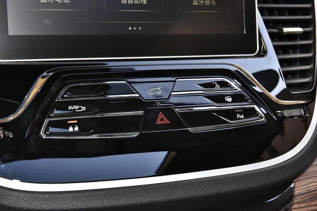 按键区域采用的是黑色烤漆包裹,日常擦拭必不可少,语音识别、自动泊车以及全景影像的按钮悉数可见。