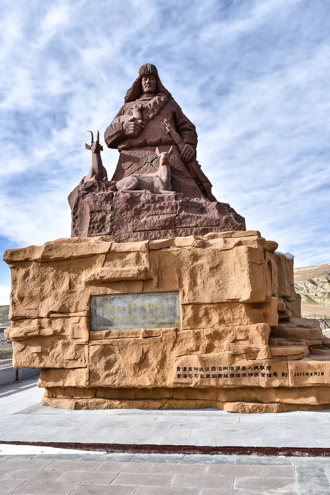 位于昆仑山口处缅怀索南达杰的石雕