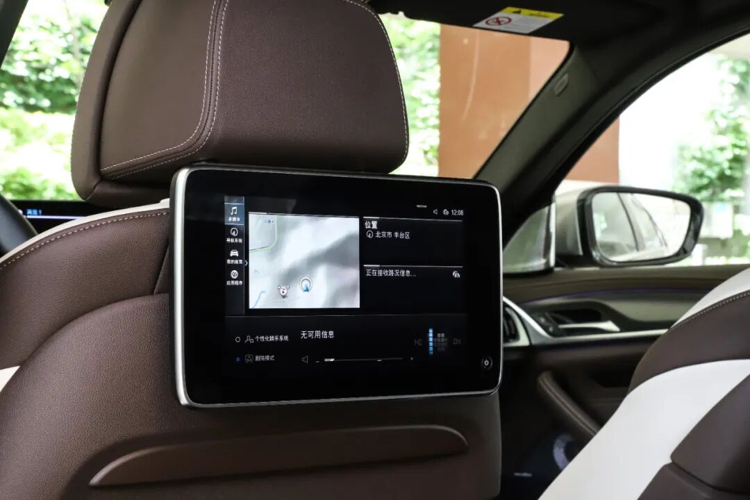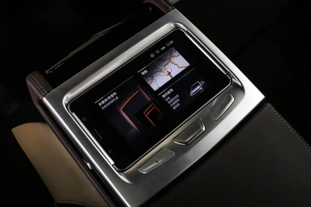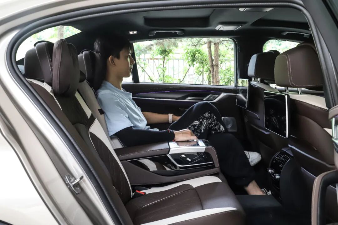 宽大的后排座椅舒适度极高,采用Sensatec合成皮,摩卡色+象牙白的配色符合一台行政轿车该有的气场。后排座椅调节以及娱乐是行政级座驾必不可少的玩物,两块屏幕支持HDMI输入,可独立控制也可与前排联动。