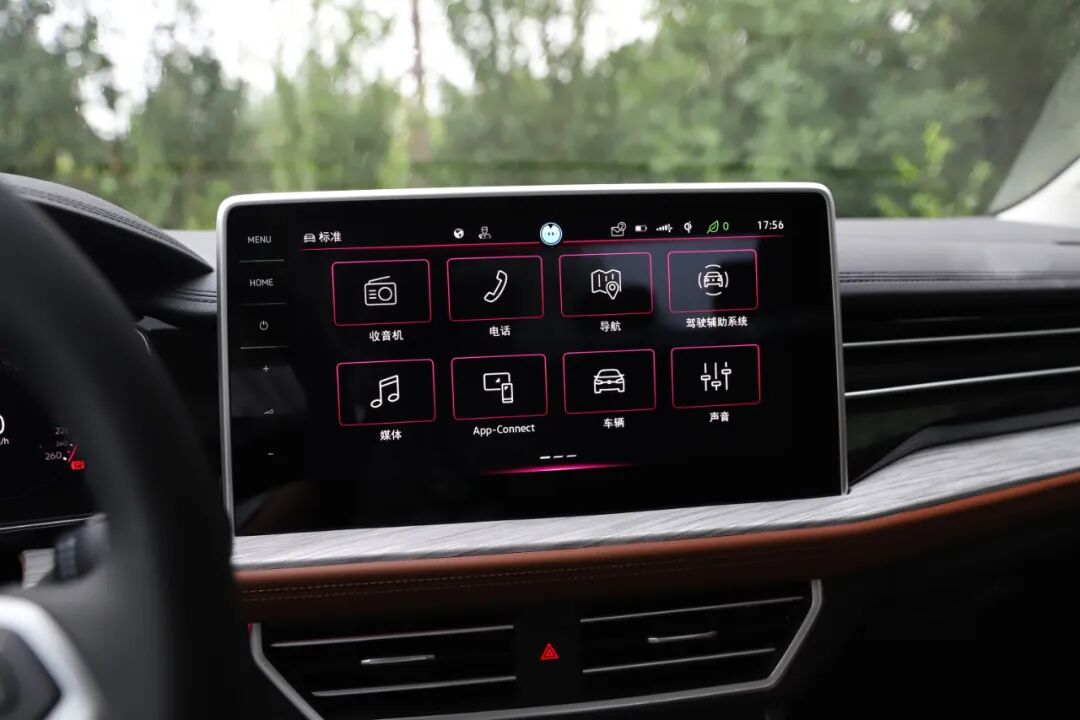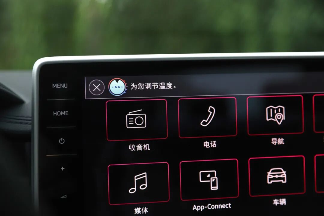 10色可调内饰氛围灯、手机无线充电、分区自动空调、全景天窗、外后视镜加热/电动折叠、空气净化、无钥匙进入/启动等功能在试驾车型上也没有缺席。