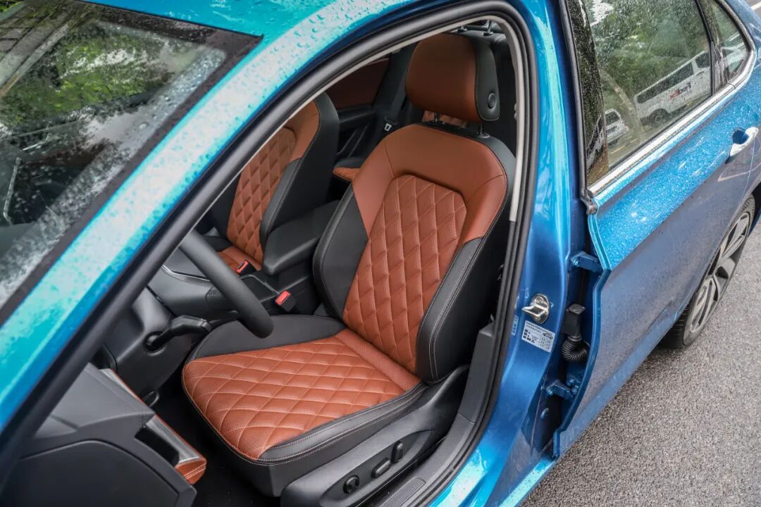 棕黑双拼配色座椅在菱形绗缝非对称打孔工艺加持之下,质感进一步提升。功能方面,主驾驶座椅支持8向电动调节,副驾驶座椅支持6向电动调节。前排座椅加热/通风功能在速腾1.5T车型上需要选装。