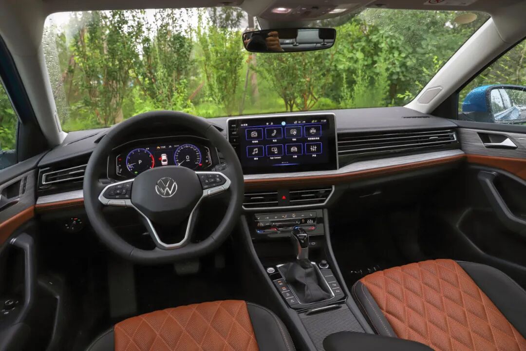 新款速腾内饰变化可谓是天翻地覆,中控台造型更加平直有层次而且还设置了多条横贯左右的装饰线条。中控大屏采用悬浮式设计而且还有银色包边,方向盘是大众品牌最新样式而且支持加热。挡杆附近区域的造型设计基本与此前的车型保持一致。