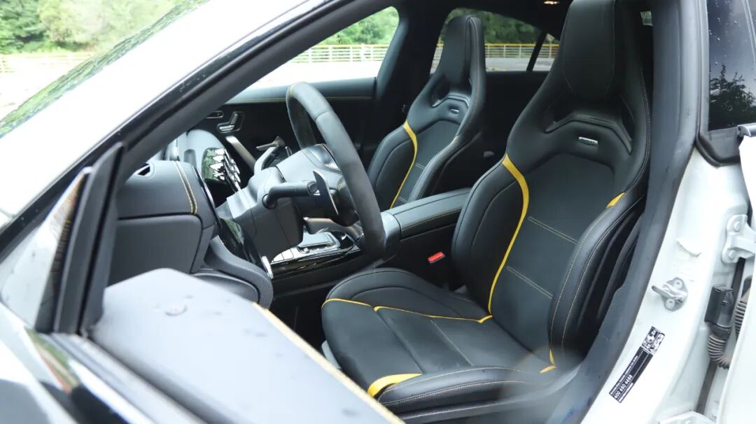 标准的奔驰风格内饰在豪华氛围的营造上完全不用担心,您只需要知道这台CLA 45 S拥有握感极佳源自AMG GT系列带有回正标的麂皮材质方向盘,以及包裹性更棒的运动座椅就足够了。