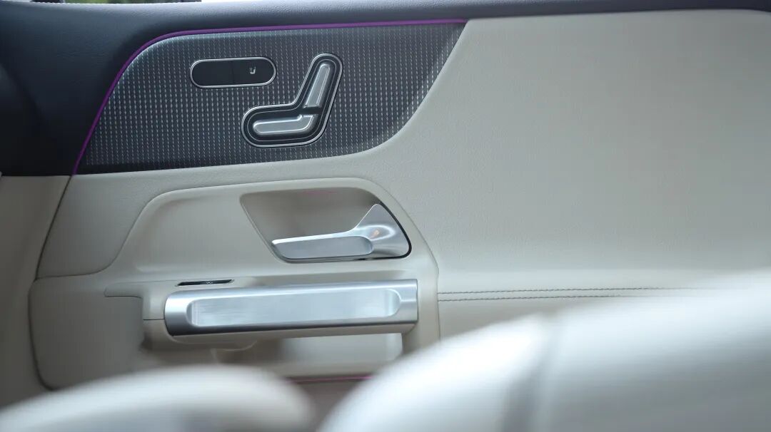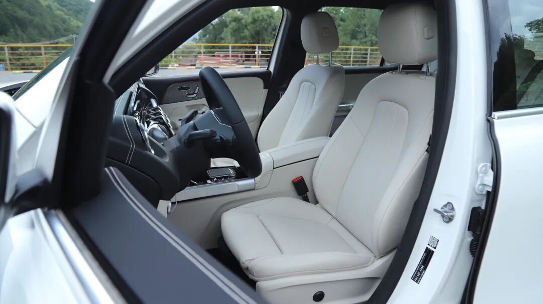 正如你所见,EQB前排座椅并不算宽大,不过侧翼支撑还算到位,包裹性不弱。功能方面较为全面,除常规的电动调节外,还提供有腿托、四向腰部支撑调节、座椅加热。