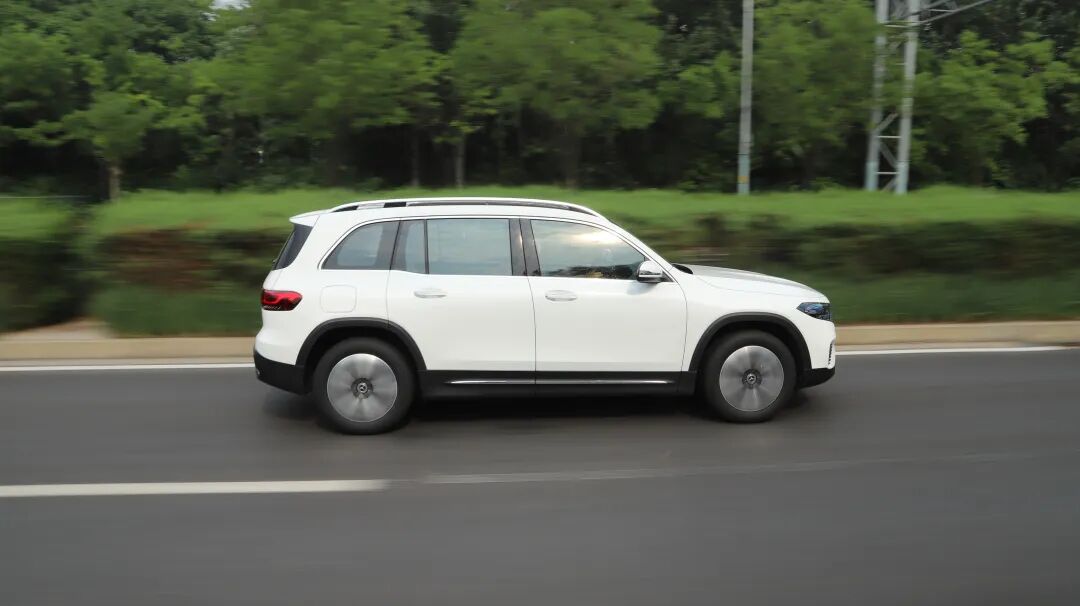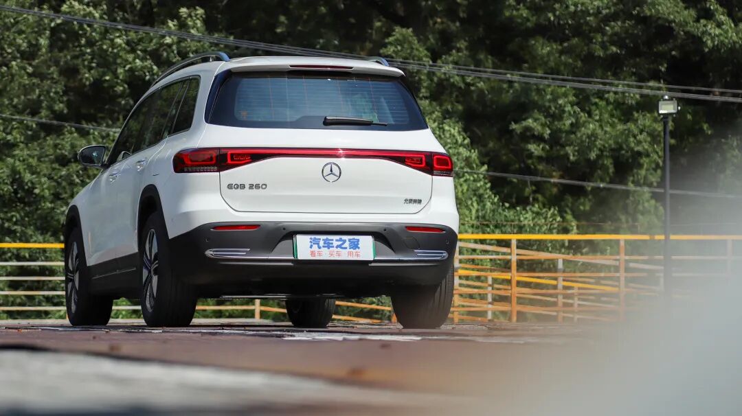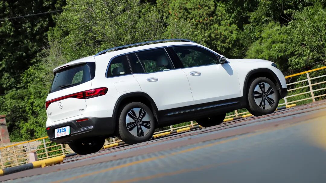 奔驰EQB的侧面造型方正,线条平直,看上去很有力量感。细节处的车顶行李架、后段上扬的窗线都是从GLB上延续下来的元素。就车侧而言,EQB 260很难看出与GLB车型的差异。