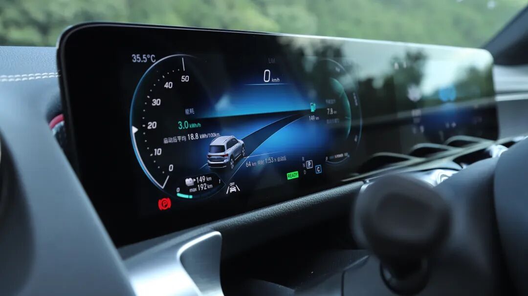 值得注意的是,EQB的刹车踏板前段较软,踩下去会比较虚,制动力介入很少,强动能回收模式下还可以借助电机反拖,如果纯靠脚踩的话则需要将近一半的行程才有明显制动感,踩踏时会有种不太线性的感觉。