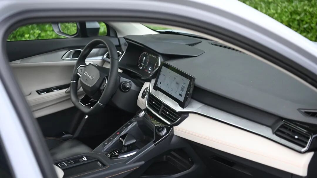 如果这还满足不了你,那你再看看内饰,怎么样这细腻的皮子、两块液晶屏、精致的小旋钮,是不是还挺像那么回事的,此外一体式座椅搭配上个性的拼色,和整体内饰氛围非常贴合。