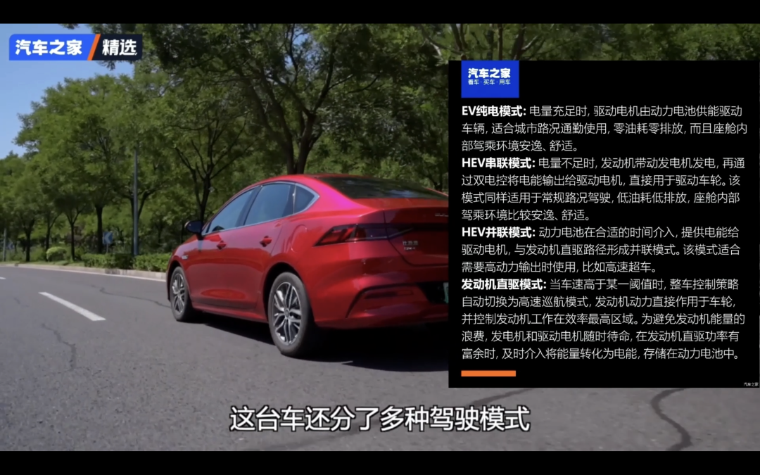 然后这台车还分了多种驾驶模式,驱动形式的包括纯电和混动。驾驶方面的有经济、常规和运动;在混合动力的时候又分为混动串联、电驱为主,馈电下发动机带动发电机输出。并联、发动机直驱+电机驱动,急加速性能好。
