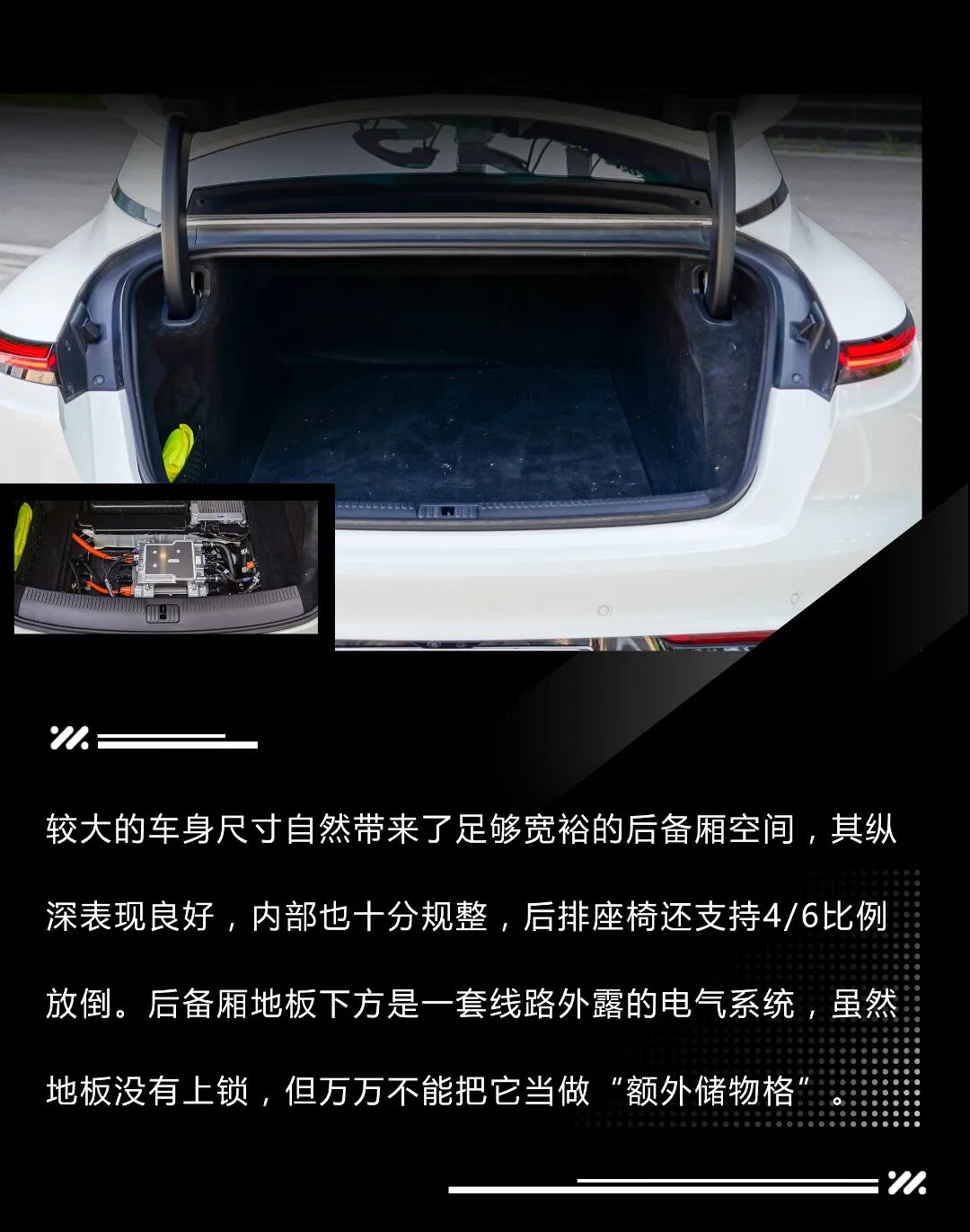 撰写这篇试驾文章时,仿佛就是在排列一篇密密麻麻的配置表。在这辆智己L7上,几乎可以找到当下流行的大部分配置。你也可以处处见到设计师与工程师的用心,甚至打开前机舱盖后,连补胎工具都配备了设计感满满的盖板。