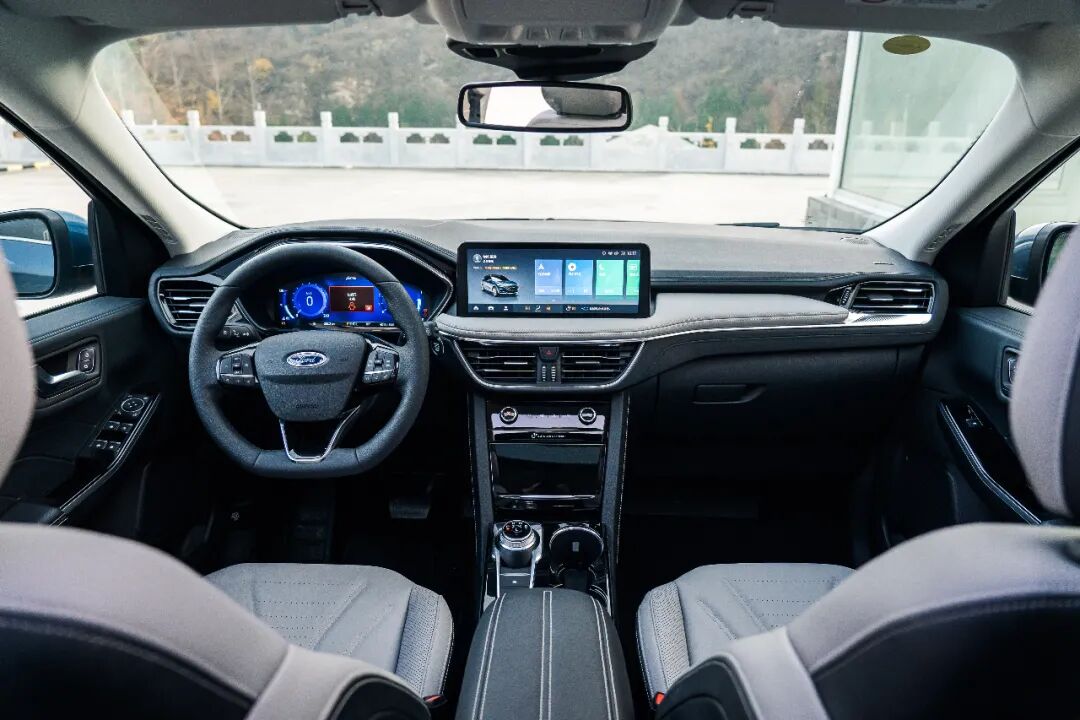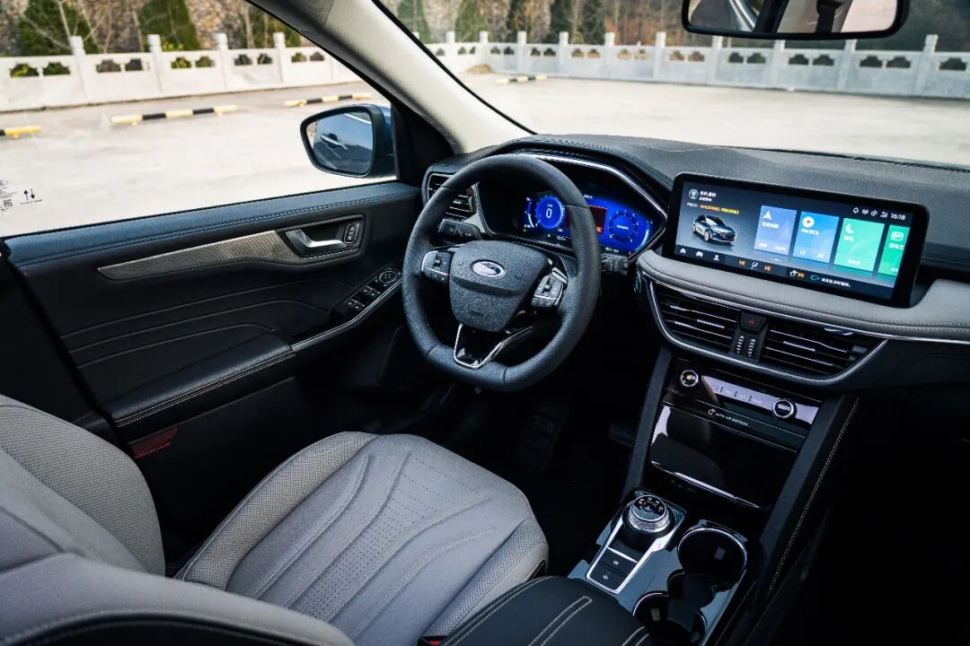锐际的内饰同样出自中国团队之手,他们很清楚我们的需求,全液晶仪表加上悬浮式的中控屏幕带来了不错的科技感。车机系统为SYNC+系统,操作流畅并且带有丰富的互联内容。配置丰富也是锐际的特点,虽然并不是顶配车型,但今天我们这台两驱聪慧嘉享款的配置也挺足。像是带感应的电动后备厢、全景天窗、前排无线充电等等都有所配备。并且还配备了像是主动刹车、车道偏离预警在内的诸多主被动安全配置。