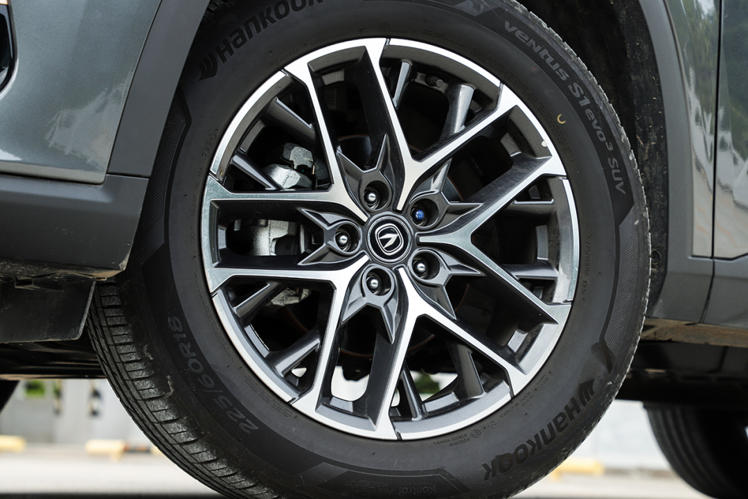 轮圈采用双五辐设计,尺寸为18英寸,大小我认为刚刚好。轮胎方面,与之匹配的是韩泰ventus S1 evo3系列轮胎,规格为225/60 R18。