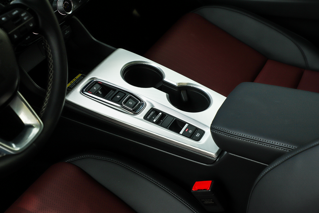 尾部造型经过细微调整,后包围与燃油版车型大同小异,排气布局由双边共双出真排气布局改为了单边单出的隐藏式布局,符合混动车型的产品定位。此外,右侧尾灯的下方新增了“e:HEV”的专属标识,以表明身份。